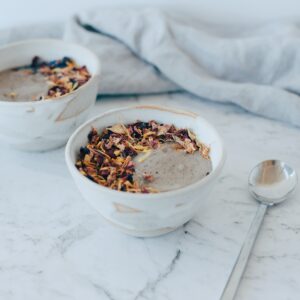 - Topping (optional) Edible Flowers, Fresh Fruit, Granola, Cacao Nibs